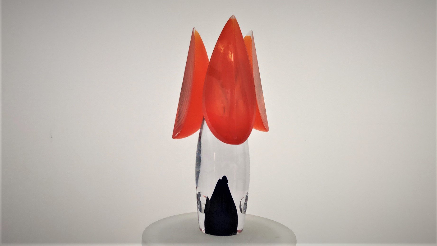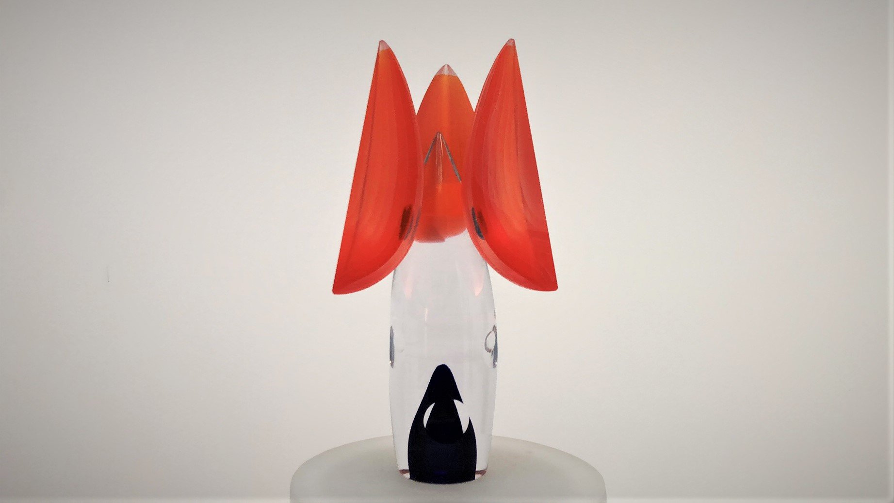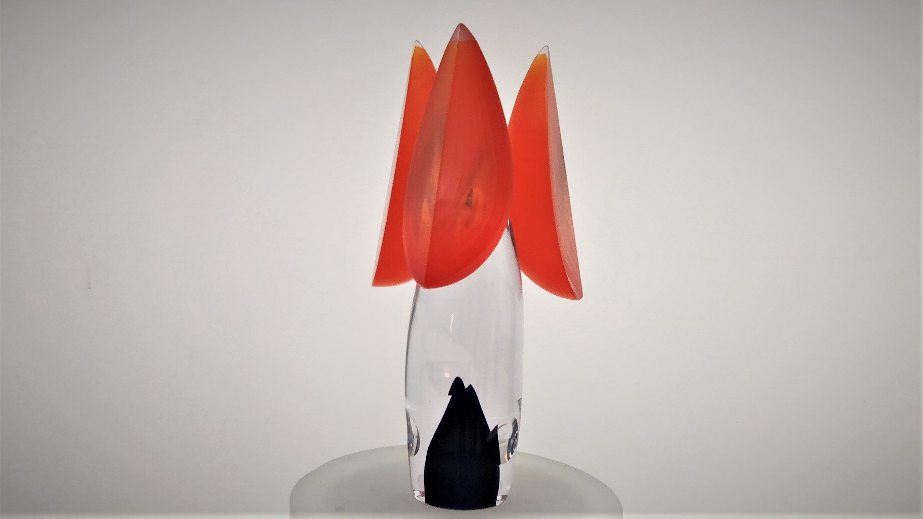 Murano Glass Sculpture TETRIS is made by the Artist Afro Celotto in co-production with Artist Marco Varisco. Superclear glass with blue color and bubbles. 3 Orange overlay segments fixed on central body. This is one of the first pieces realized by the cooperation of two of the most important artists actually working on glass, a glass master and an engraver/grinder.