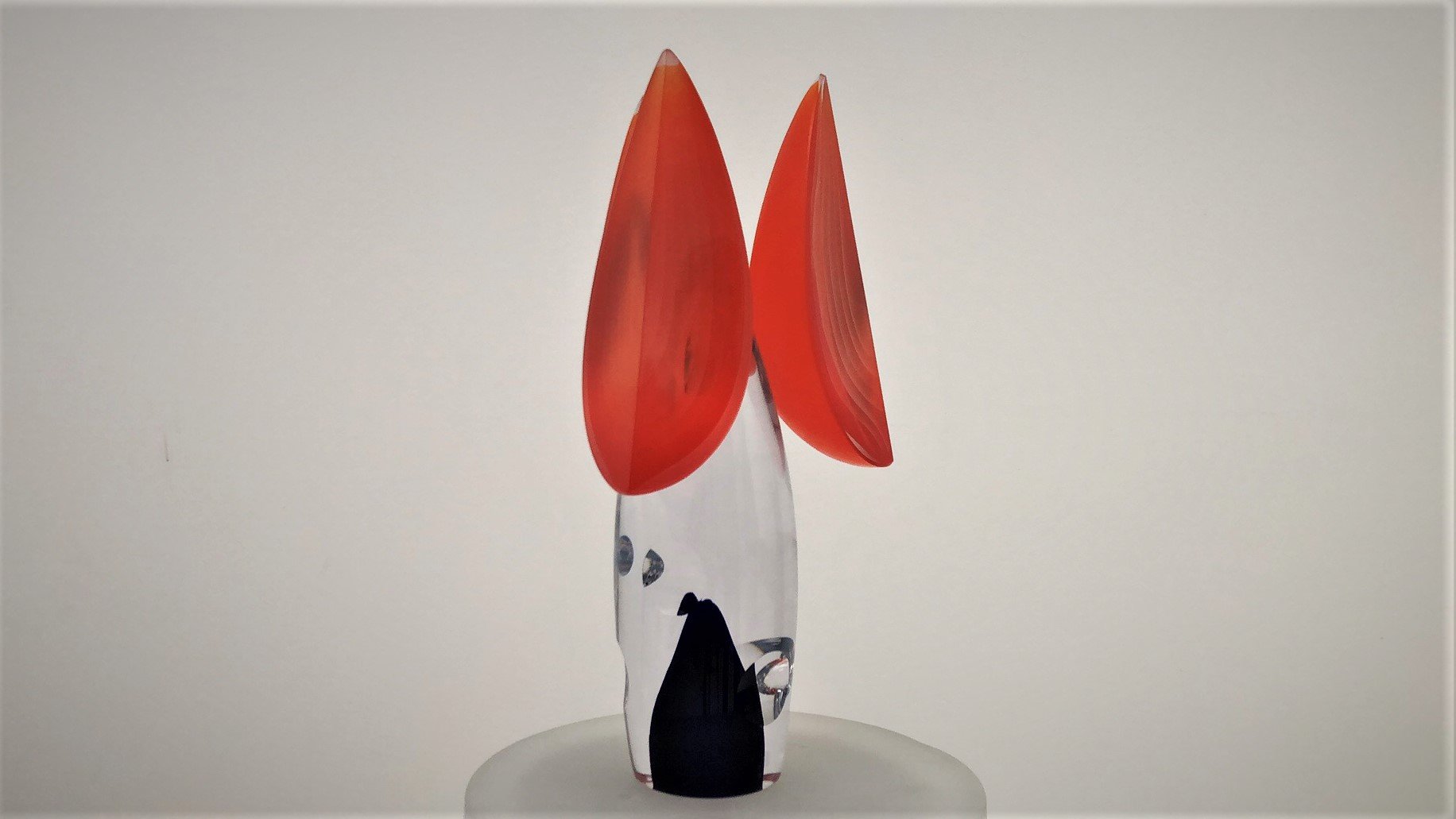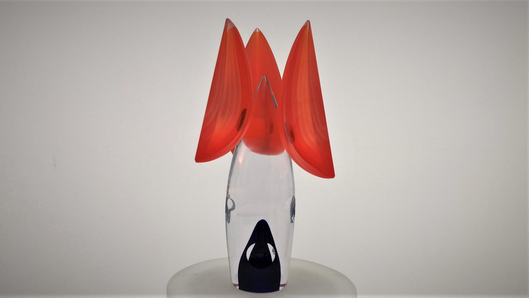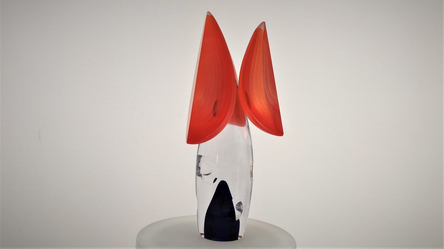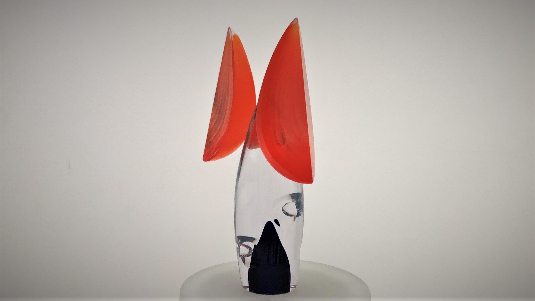 Murano Glass Sculpture TETRIS is made by the Artist Afro Celotto in co-production with Artist Marco Varisco. Superclear glass with blue color and bubbles. 3 Orange overlay segments fixed on central body. This is one of the first pieces realized by the cooperation of two of the most important artists actually working on glass, a glass master and an engraver/grinder.